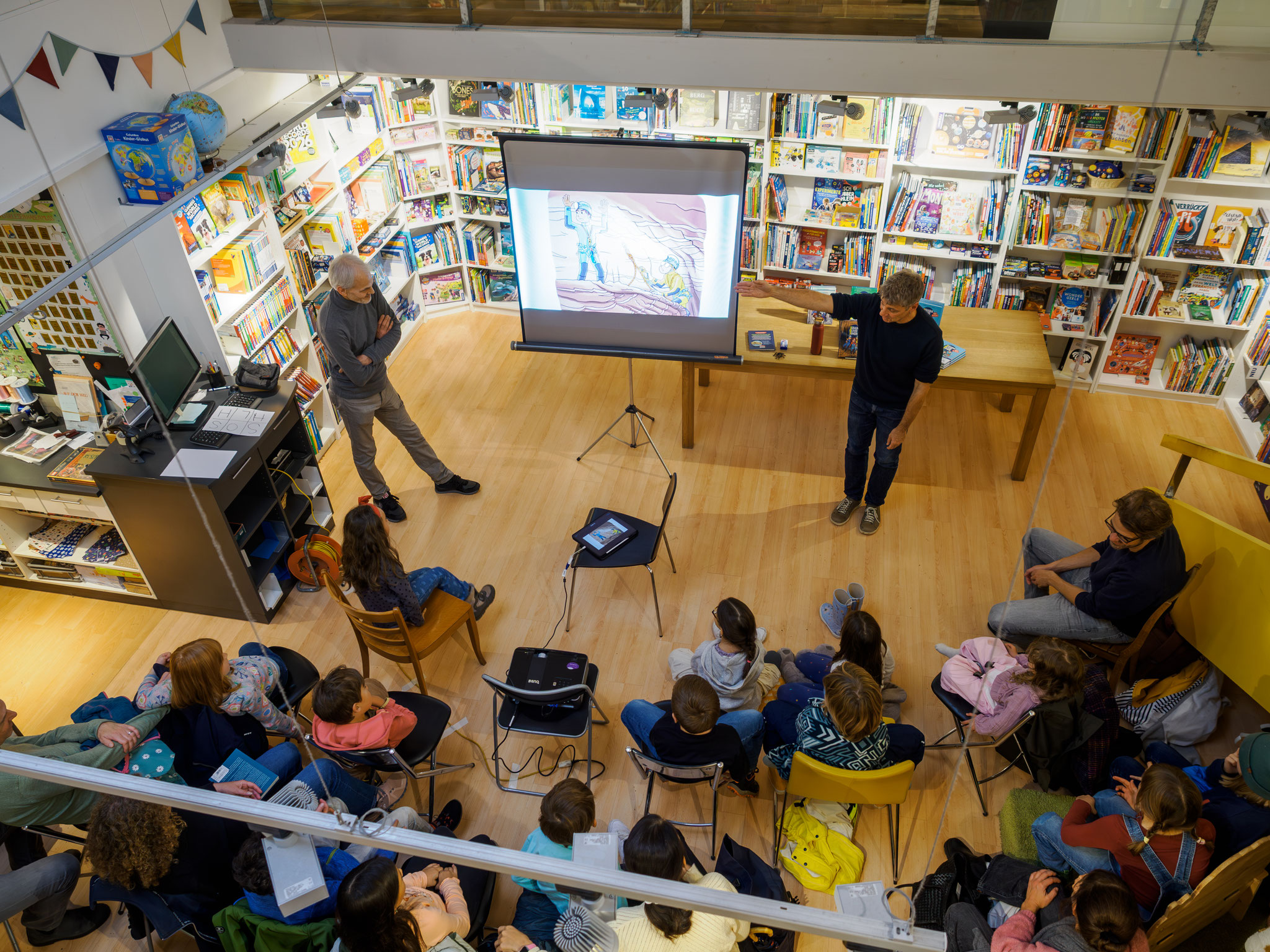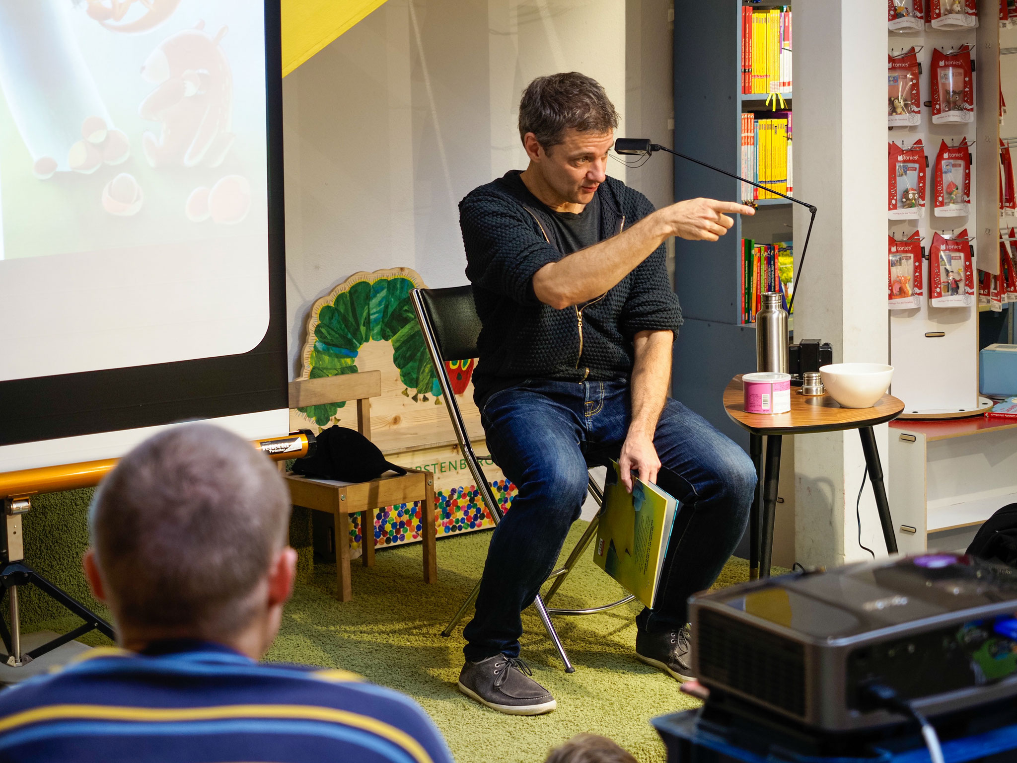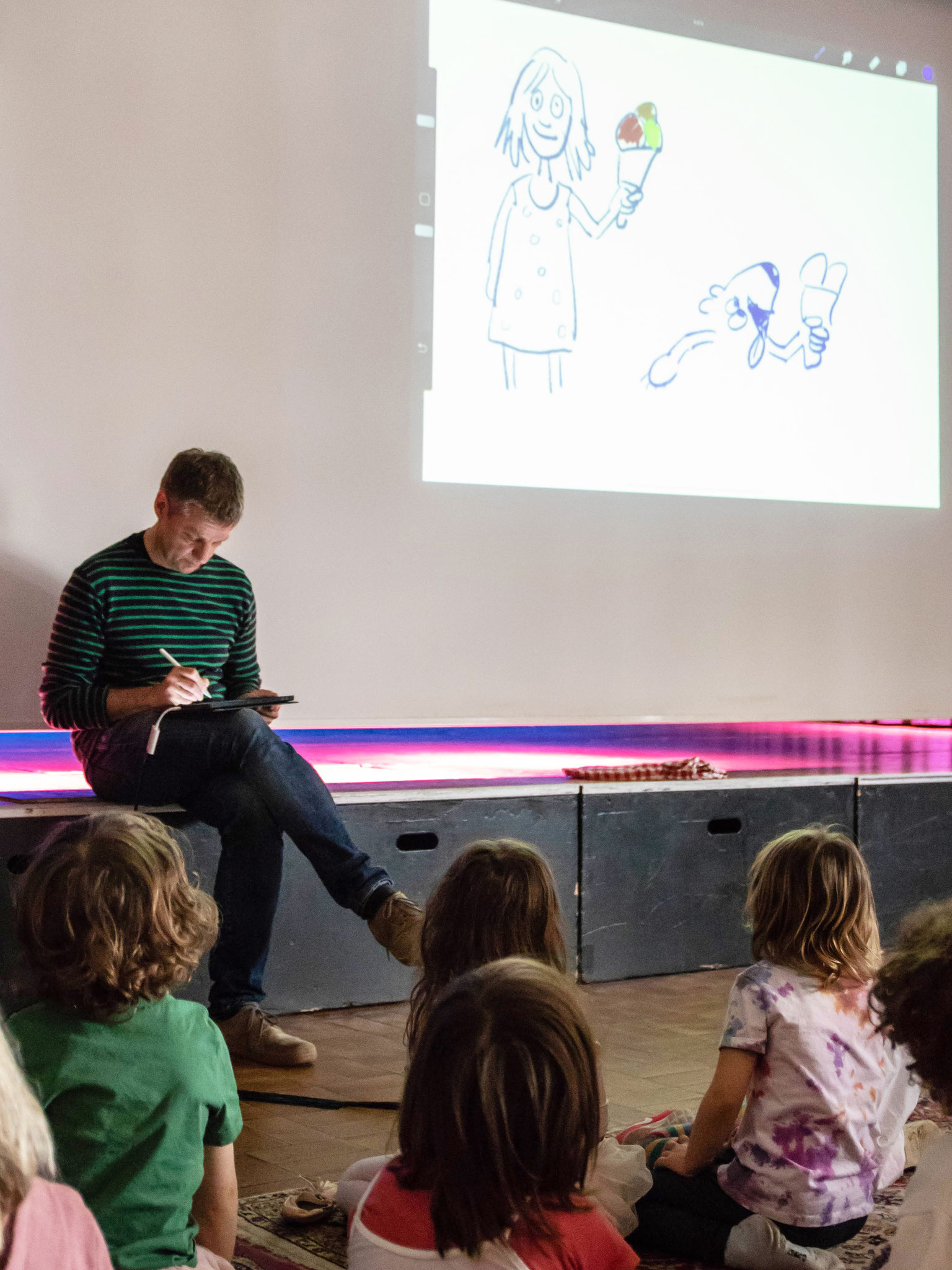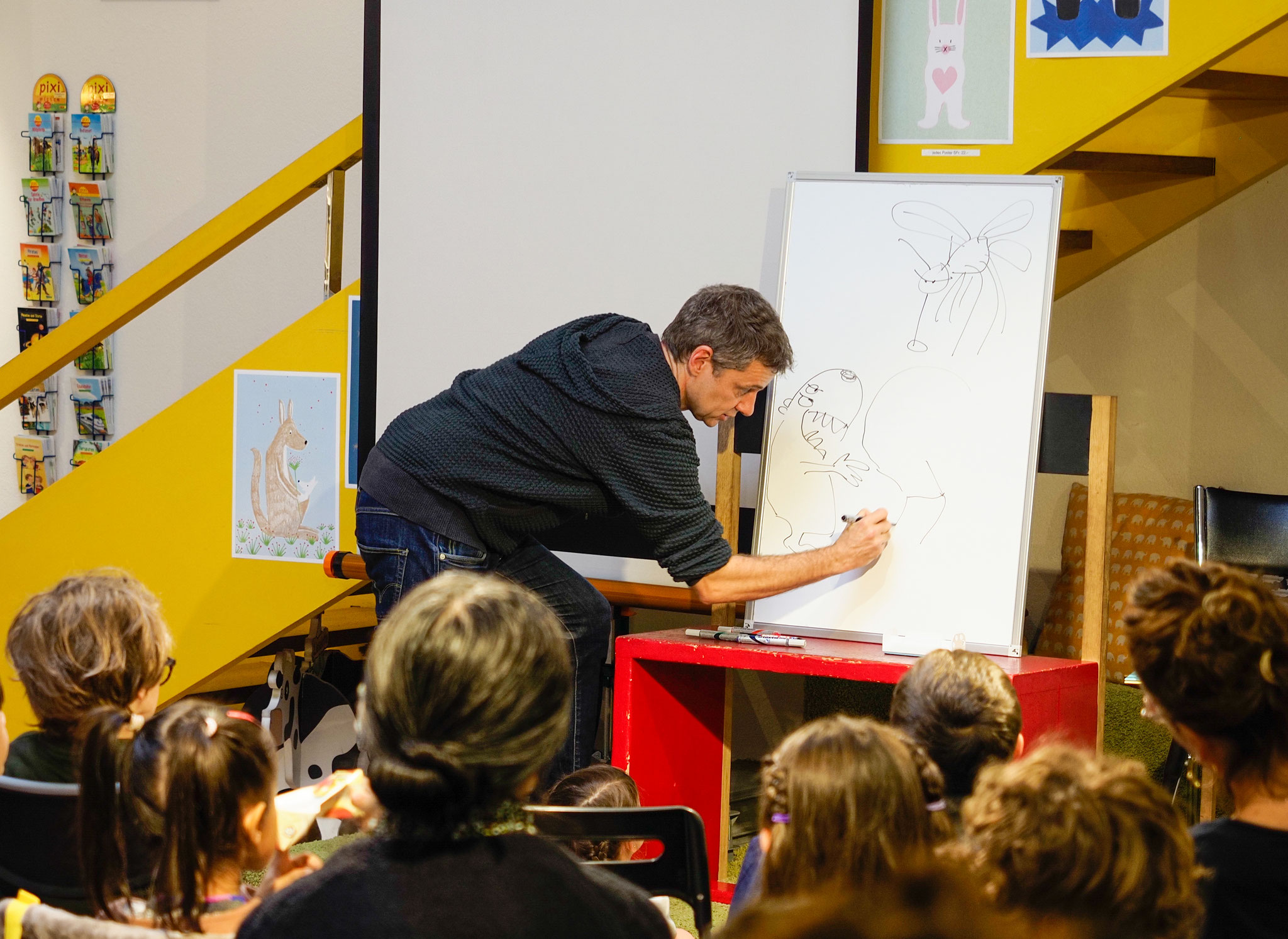 Ich mache grundsätzlich immer Bilderbuchkino zu den Lesungen und je nach Lesung zeichne ich auch live.
